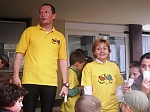 Az Eötvös Loránd Általános Iskola udvarán mindenkinek köszönetet mondott, aki biztatta, és aki csatlakozott hozzá – erőt adva az utolsó kilométerekhez.