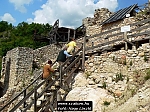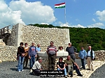 A kis közjátékot követve természetesen bejutottunk a várba és azt körbesétáltuk, megmászva a legmagasabb pontját is. A feltárás még tart, így egyes részeken óvatosan kellett haladnunk a köves talajon, de ahol már visszaépítették a falakat, ott nagyon szép teret hoztak létre. Az egyik sziklafalon a kissé feltámadt szél országzászlót is lengetett.