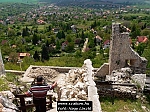 Innen már látszott a következő úti célunk, a Csókakői-vár. A buszhoz visszaereszkedtünk a lefelé már meredekebbnek tűnő domboldalon, majd lépcsőn és továbbutaztunk busszal a vár alatti parkolóig. Itt, aki akart, még egy erőpróbát téve felkaptathatott a település fölé magasodó, erdők övezte várhoz. A dombtetőre felérve némi meglepetéssel vettük észre a várbejáratnál 200 Ft-os belépőt szedő urat – holott mi úgy tudtuk, olvastuk az interneten, hogy a vár ingyen látogatható. Ezen túlmenően még a Csókakői Várbarátok Köre a vár további feltárását segítő adománygyűjtő perselyt is elhelyezett.