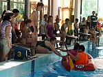 A fenti címmel rendezett játékos vízi váltóversenyt a Városi Szabadidő Központ május 17-én a százhalombattai általános iskolásoknak a Kiss László Sportuszodában.
