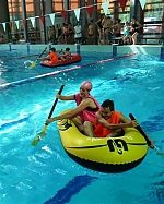 A tavaly decemberi "Kié a leggyorsabb tornacsuka?" című vetélkedő kupasorozatként folytatódik, ezúttal vízi jártasságukat mérték össze a felső tagozatosok. A hét feladat között akadt lovagi torna, gumicsónakos evezés, komphajózás, de a medence körül is ügyesnek és fürgének kellett lenniük a versenyzőknek. Dörnyei Balázs, a VSZK munkatársa, a vetélkedő szervezője elmondta, minden csapat előre kijelölhetett egy feladatot, aminek az eredményét duplán kívánja beszámíttatni a végeredménybe.