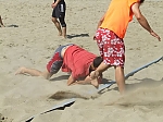 Napozás a parton, csobbanás a hűsítő vízben, gyékényen heverészés az árnyat adó fák alatt. Múlt szombaton a strandra látogatók legtöbbje ezt a megoldást választotta kikapcsolódásra. Nem így az a lelkes 50-60 focista és szurkolóik, akik a LEGEA tornájára érkeztek. Öt csapat nevezett, legtávolabbról a tiszakécskeiek érkeztek. Körmérkőzéssel dőlt el a kupa sorsa, így minden együttes nyolcvan percet töltött a 30 fok fölötti hőségben a 40 fok feletti homokon. Egy-egy összecsapáskor a felszálló száraz homokfelhőben szinte eltűntek a játékosok. Legjobban a "Biopon" tagjai tudtak alkalmazkodni a körülményekhez. A battai strandfocisok, nevükhöz méltóan "lemosták" a pályáról az ellenfeleket. A VSZK zöld gyepéről ismerjük Károlyi Gábor csapatkapitányt, aki elmondta, bár spontán és az utolsó pillanatban szerveződött a csapat, jól ment a játék. Ők a legközelebbi mérkőzésükön a LEGEA mezében is pályára léphetnek, hiszen a kupa mellé ez volt a csapat nyereménye. A szigetvári "Keresztes lovagok" és a Tisza-parti "Boroskola FC" szerezték meg a másik két dobogós helyezést. Nem csüggednek, és gyakorlásra is lesz lehetőségük hamisítatlan tengerparti homokon, mert az egyik szponzor jóvoltából egy hetet tölthetnek Görögországban. Tisztesen "állták a homokot" a VA-CI és az SZLK játékosai is, de érmet ezúttal nem szereztek. Szilvási Zsolt főszervező elmondta, hogy sok-sok éves focista múltja tartja a sportág közelében, harmadik alkalommal szervezte meg a strandfoci-tornát a városi strand pályáján. Örül, hogy vannak visszatérő csapatok, jó a társaság, kellemesen el lehet beszélgetni a meccsek után egy életmentő hideg sör mellett.