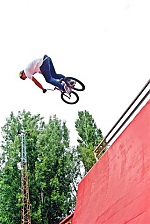 A vendégek battai összekötője, Balla Richárd jó egy évtizeddel ezelőtt Nagy Gáborral együtt építette ide az első rámpákat. Igaz, ők gördeszkával kezdték, de egy ideje egyre több BMX-es jár az extrém-parkba. A tábor edzéseire is lelátogatott néhány helyi bringás, hogy újabb trükkökkel frissítsék repertoárjukat. A táborozók, ha nem a pályán voltak, strandoltak, vagy a Fáraó Sportcentrumban ütötték el az időt. Ezen kívül maximum a TESCO-ig tekertek el és legfeljebb Füreden lehetett látni őket. Látványos volt, amikor húsz bringás negyven keréken csendben, tömött sorokban átsuhant a keskeny utcákon. A tábor alapszabálya, hogy nincs elkószálás. Nem lehet könnyű kordában tartani a fiúkat, mert akik ilyen veszélyes mutatványokat vállalnak, azok nemcsak a pályán merészek.