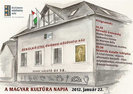 Az Óvárosi Közösségi Házat ezen a napon nevezik el Zenálkó Etelről a 14.30-kor kezdődő ünnepség keretében. Az egykori tanítónő az 1920-as években tevékenykedett Százhalombattán, nagy szerepet játszott a közművelődés, a művészi élet és a helyi színjátszás elindításában. A névadóval egy időben avatják fel Matta Árpád földbirtokos, Jankovits Ferenc faluközösségi aktivista és Márton Béla festőművész emléktábláját is, akik szintén meghatározó szereplői voltak Óvárosnak. 15.30-tól Szvorák Katalin Liszt Ferenc-díjas és alternatív Kossuth-díjas népdalénekes, előadóművész ünnepi koncertje zárja az óvárosi eseményeket.