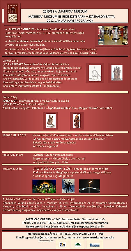 A "Matrica" Múzeum és Régészeti Park januári programjai