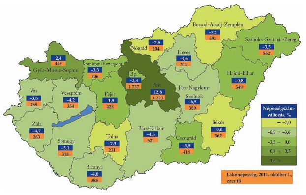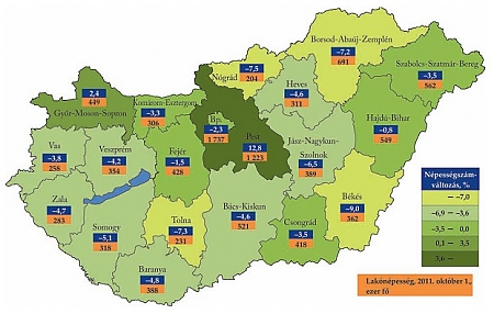 A 2001. évi népszámlálás óta eltelt időszakban az ország csaknem valamennyi megyéjében csökkent a lakónépesség. Kivételt képez Pest megye, ahol a lakosság nagymértékben, közel 13 százalékkal nőtt.