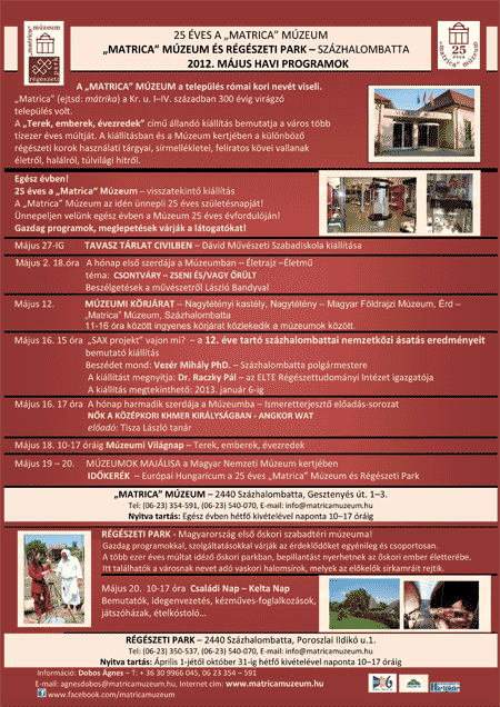 A "Matrica" Múzeum és Régészeti Park májusi programjai