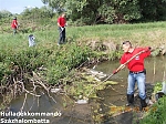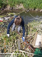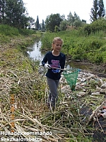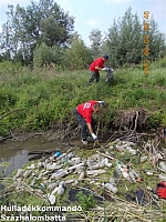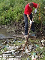 PET palackokat pecáztak a százhalombattai Hulladékkommandó tagjai a Bara-patakból június elején.