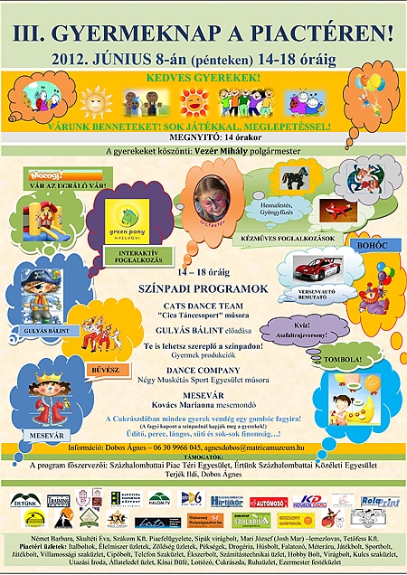 Az elmúlt években nagy sikert aratott hagyományteremtő rendezvényen sok-sok gyerek élvezhette a gyermeknap örömét. A programot sokan támogatták és támogatják az idén is. A harmadik alkalommal megrendezésre kerülő gyermeknapon Vezér Mihály polgármester köszönti a résztvevőket.