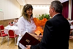 A Polgármesteri Hivatal dolgozóit Vezér Mihály polgármester köszöntötte, aki rendkívül elismerően szólt a kiemelkedő színvonalú közigazgatási munkáról. Az ünnepség keretében ketten Köztisztviselői Elismerő Oklevelet vehettek át a polgármestertől, illetve dr. Turbucz Sándor jegyzőtől. Az egyik kitüntetett, Szalló Gáborné 1981 óta él Százhalombattán, 1997-től pedig fáradhatatlanul dolgozik a Polgármesteri Hivatal munkatársaként. Kezdetben intézményi, majd belső ellenőrként tevékenykedett, precíz és eredményes munkájának köszönhetően jelenleg a hivatal belső ellenőrzési vezetőjeként dolgozik. Egyebek mellett a civil szervezeteknek nyújtott önkormányzati támogatások ellenőrzése is a feladata lett. Büszke rá, hogy sikerült elérnie, mára nincs gond az elszámolásokkal. A díjat rendkívül nagy elismerésnek tartja. Közel 40 évnyi munkaviszony után várhatóan még idén ősszel nyugdíjba vonul, és a lehető legtöbb időt gyermekeivel és férjével szeretné tölteni, tavasztól őszig pedig baráti társaságukkal a jól bevált kempingezést tűzték ki célul.