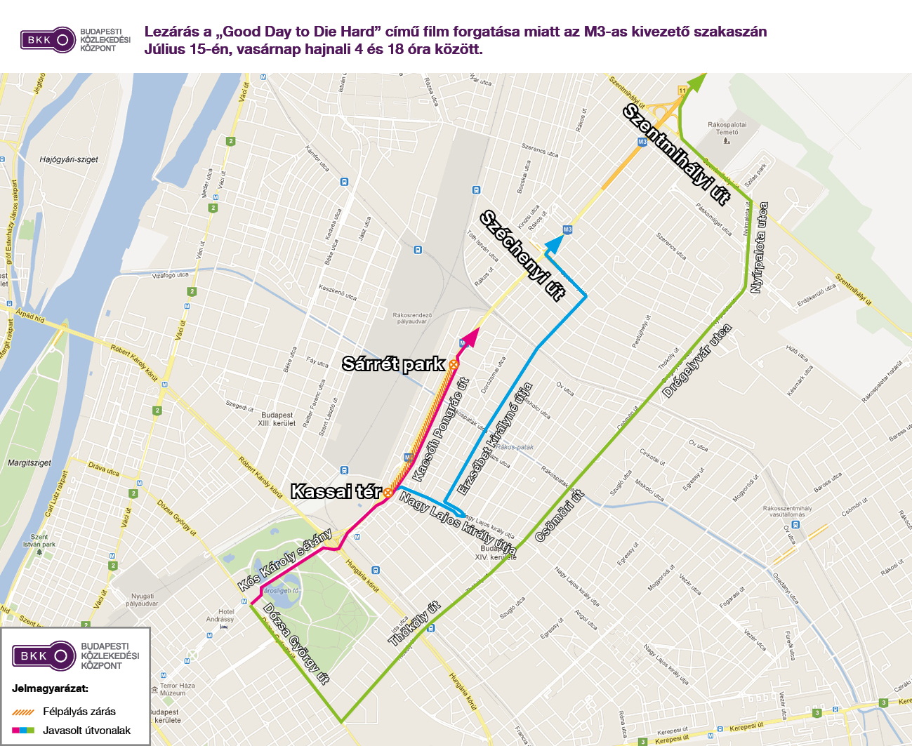 Az "A Good Day to Die Hard" című film augusztus végéig tartó forgatása miatt a közeljövőben is több alkalommal kell majd forgalomkorlátozásokra számítani Budapesten. Július 15-én, vasárnap az M3-as autópálya Kassai tér és Sárrét park közötti kivezető szakaszát zárják le.