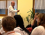 A harmóniát árasztó színes képek után a gazdagon felszerelt udvart, a hangulatos csoportszobákat tekintették meg a résztvevők, majd dr. Pap János nevetéskutató derűs és elgondolkodtató előadásával folytatódott a program.