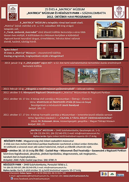 A "Matrica" Múzeum és Régészeti Park október havi programjai