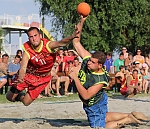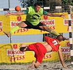 Borsodi Strandkézilabda Nemzeti-bajnokság, kvalifikációs sorozat 2013, Alsóörs, július 6-7. Borsodi Beach Aréna, férfidöntő: Happy Hands - Dabasi Dinamit 1:2 (22:14), (17:18), (szétlövés 10:11)
