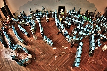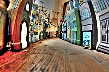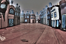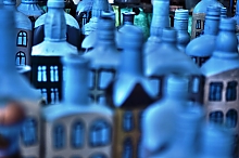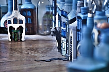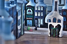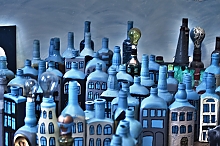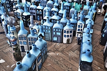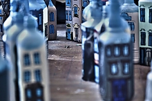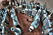 - A házakat egyelőre egyedül festem az otthonomban. Az építésnek ebben a szakaszában fontosnak tartom, hogy ez egyelőre így maradjon. Azon túl, hogy házakat festek, egy világot szeretnék felépíteni. Gondolatokkal, múlttal, álmokkal teli várost szeretnék kitalálni, ezért nagyon jó a folyamatos kontakt. Most épp a városszerkezet mozgat legjobban, legszívesebben egész nap "legóznék" az üvegekkel. Emellett nagyon inspirálóan hat rám, ez a város közepén, egy lakásban, a bútorok között épülő város, és ezekkel a viszonyokkal való játék.