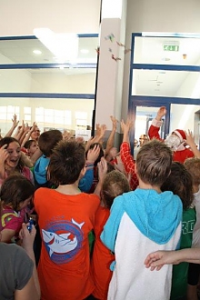A megyei versenyre megérkezett az uszoda parkolójába a rénszarvasok húzta szán is, nagy örömet okozva nemcsak a legkisebbeknek, hanem az "öreg" versenyzőknek is. A közös éneklés sok-sok szaloncukrot és csokit varázsolt elő a Mikulás zsákjából.
