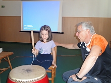 Nem is Ilinyi Jánosnak hívták volna az előadót, ha a program végén nem tart közös edzést ovisainknak. A gyerekek a földön ülve, a sárkányhajó versenyre való felkészülés gyakorlatait végezték.