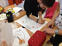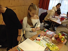 Márton alakjához, illetve a népszokásokhoz kapcsolódó nyelvi és ügyességi feladatok váltották egymást. Törtünk diót, kerestünk elrejtett libákat, majd zokniból készült libákat tömtünk kukoricával. A gyerekek nagyon lelkesen készítettek német nyelvű menükártyákat hagyományos libavacsorára, majd rendkívül kreatívan díszítették is ezeket az étlapokat.