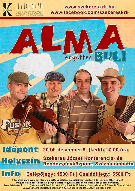 Gyertek egy jót bulizni az Almákkal! Találkozunk december 9-én a Szekeres József Konferencia –és Rendezvényközpontban!