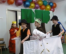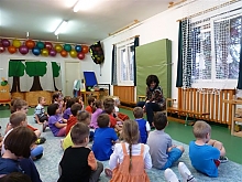 Az ünnepi program első részében az óvoda Játszani jó! drámacsoportjának meseelőadását tekintették meg a gyerekek, melynek címe a Szóló szőlő, mosolygó alma, csengő barack volt. Ezt követően Kovács Marianna gyermekkönyvtáros, mesemondó mondott mesét a legnagyobbaknak. Ők választották ki, melyik történetet szeretnék meghallgatni, és mivel nagyon élvezték az interaktív előadást, ráadást is kaptak.