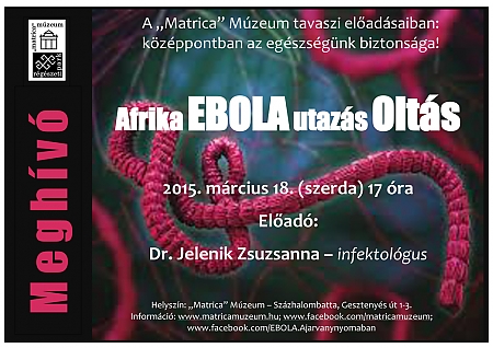 Az Ebola, a járvány nyomában című kiállításunkhoz kapcsolódóan újabb ismeretterjesztő előadásra kerül sor 2015. március 18.-án, szerdán 17 órakor a "Matrica" Múzeumban.