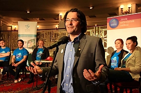 Gundel Takács Gábor, játékvezető köszöntötte a "0321-kihívás - Játék előítéletek nélkül" résztvevőit, akik a játék során a Down-szindrómások életében jelentkező nehézségekkel ismerkedhettek meg.