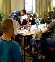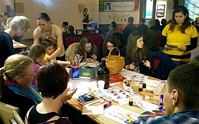 A kézműves asztalnál – Petró Magdolna és Tóth Zsuzsanna, a "Matrica" Múzeum munkatársai segítségével – ugyancsak harci díszek készültek: papírpajzs és -sisak, origami vikinghajó, színes Dala ló. A jellegzetes, tömör falovat – amilyet a svéd bútoráruházban is lehet látni – autentikus mintákkal és színekkel díszítették. Különböző technikákkal rúna-rajzolatok kerültek kövekre. Itt segédkezett Szatmári Kristóf és Baróthi Zsófia is, az Arany János gimnázium két diákja, akik ugyan teljesítették már a középiskolások kötelező ötven önkéntes óráját, de kedvük volt aktív részt vállalni az Ifjúsági Műhely rendezvényén. Az önkéntesség igen kiemelt szerephez jutott ezúttal, miután szinte minden forrás bezárult a szervezők előtt.
