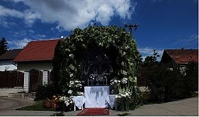 Az úrnapi körmenet, virágsátor-állítás, virágszirom-szórás általános szokás a katolikus Európában, de míg máshol a négy sátrat, amely a négy égtájat jelképezi, a templom körül építik, nálunk a családi házak előtt is állnak, a díszítést a tulajdonosok vállalják.