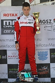 A futamon Zsombornak meg kellett szokni az új vázat, ezért elsősorban a vezetéstechnikai szempontokra és nem az időre koncentráltak. "Nagyon profi hozzáállásban volt részünk a csapat részéről. Egy másik Zsombort láttunk a pályán, nagyon nyugodt volt, és tudtuk, hogy jó gép van alatta." – nyilatkozta Kovács Tibor, Zsombor édesapja és menedzsere. A battai versenyző a szombati szabadedzésen új gumi nélkül is a leggyorsabb volt. A vasárnapi időmérőn mindössze öt kört ment, és már az első körben megszerezte a pole pozíciót. Az elődöntőben nagyon jól kapta el a rajtot. Míg a vetélytársak nagy csatákat vívtak mögötte, Zsombor magabiztosan, öt másodperccel nyerte meg az elődöntőt. A tizenhét körös döntő futamon 14 körben kemény csatákat vívott, nem tudták megelőzni. Rajt-cél győzelemmel az első helyen végzett. Ezzel az eredménnyel szinte biztossá vált az idei, Portimaióban megrendezésre kerülő világdöntőn való szereplése. A Rotax Max Junior kategória tavalyi bajnoka nyáron töltötte be a világ legrangosabb gokartversenyén való induláshoz szükséges 13. életévét. Zsombor célja, hogy magyar bajnoki címe megvédésével újra kvalifikálja magát a világdöntőre, ahová most már ő utazna. Ehhez a legjobb úton halad, hiszen két fordulóval a bajnokság vége előtt magabiztos előnnyel vezeti a tabellát. Kovács Zsombor következő megmérettetésére, a belgiumi BNL bajnokságra és a szintén Belgiumban, Genkben megrendezésre kerülő EB-futamra készül. (Fotó: Bethlen Tamás)
