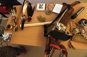 A kezdetektől kísérte végig Szekeres Gábor előadása az észak-amerikai síksági indiánok történetét, felidézve szokásaikat, kiemelkedő személyiségeiket, sorsuk alakulását egészen napjainkig. Bemutatta az elmúlt évek során általa készített pontos műtárgy-másolatokat, amelyeket a látogatók kézbe is vehettek, elmélyülhettek a gazdag részletekben. Egy másik kézműves asztalnál Jánky Sári és Kovács Dóri, az Eötvös iskola nyolcadikos tanulói segítségével indiánfonatokat és -karkötőket készíthettek a vendégek, valamint arcdíszek festését is kérhették.