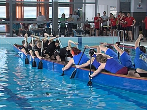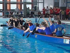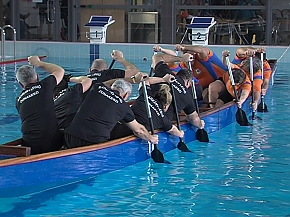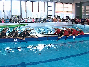A 12,5 méter hosszú sárkányhajók különleges látványt nyújtottak a medencében. "Egy évben egy medencés versenyünk van, amely a négy országos bajnokságunk közül az első" – mondta Járosi Péter, a Magyar Sárkányhajó Szövetség elnöke. Ezt az alapozás időszakában rendezzük meg, hogy enyhítse a felkészülés monotonitását. A medencés versenyen hat-hat fő ül egymással szemben, és az nyer, aki el tudja tolni a másikat. Egyébként nem feltétlenül a sárkányhajós tudás érvényesül, az erőnek és a testtömegnek itt nagyobb szerepe van, mint a nyílt vízi versenyeknél."