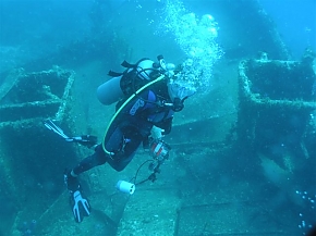 Szabó Tímea számos érdekes fotót is bemutatott a könnyűbúvárkodással kapcsolatban. Sok olyat is, amelyek a víz alatt készültek, mivel az évek során a víz alatti fényképezés is felkeltette az érdeklődését. Igaz, nem fotózott ketreces merüléssel megfigyelt cápákat, sem víz alatti esküvőt, figyelmét inkább a tengerek és óceánok élővilágának káprázatos változatossága, azon belül is a hajóroncsok különleges flórája és faunája kötötte le.