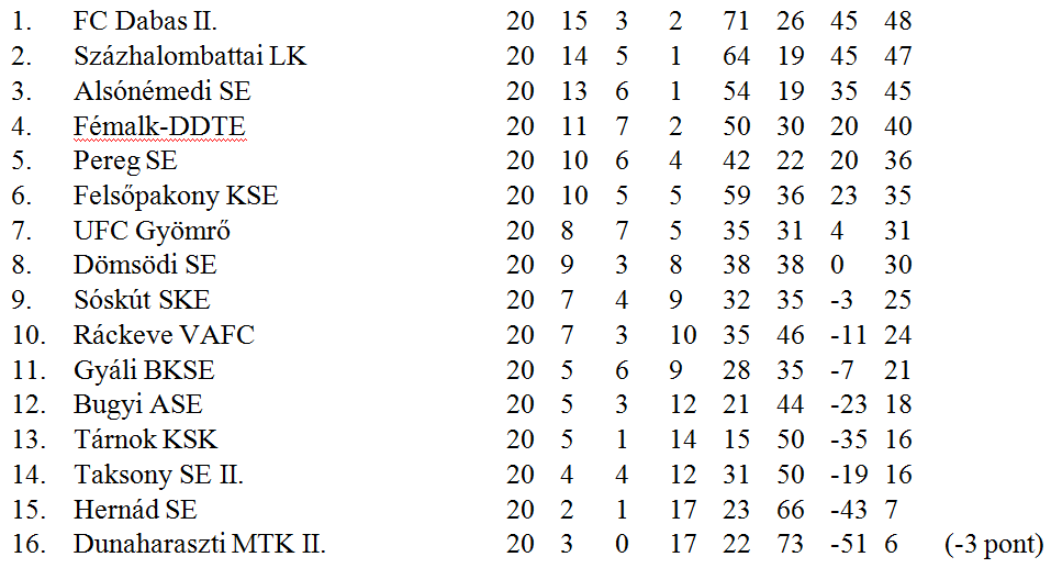 Sikerült visszavágni az egyetlen vereségért. A jobb csapat nyert, még ebben az arányban is megérdemelten. Végig a hazai együttes irányította a mérkőzést. Szép támadásokat vezetett és nem engedte ellenfelét kibontakozni. A szombati Alsónémedi elleni rangadó előtt jól jött az újabb három pont.