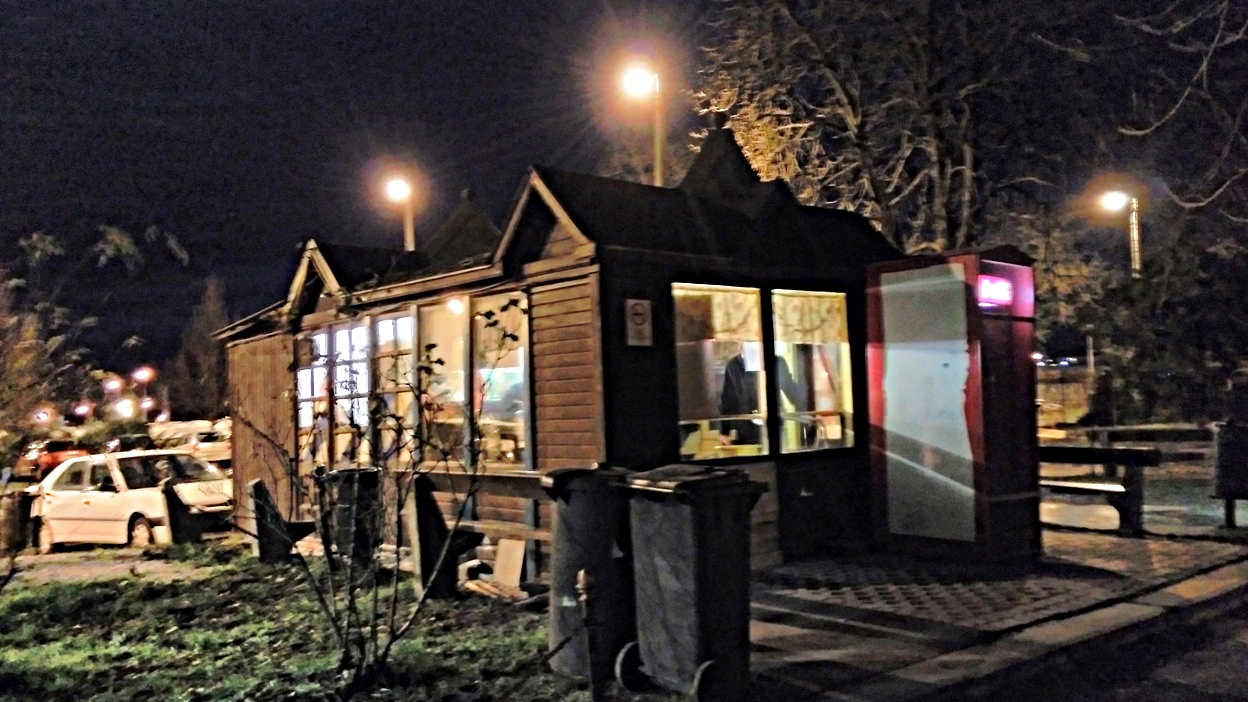 A szintén nem mindennapi vasúti “restivel", a Hambi-Hami büfével búcsúztam a várostól. Egyrészt az állomás épületén kívül helyezkedik el, ami önmagában is elég szokatlan. Szinte gyóntató fülke méretű a vendégtere, mégis néha szépen feltelik, de ezt sem írom a rovására, sőt így bulis. Másrészt két óra híján egész nap nyitva van: 02-24 Harmadrészt, bár az italkínálat nem, de az életek durván kilépnek a megszokott keretből, nem a szokásos sínek menti rántott húsos zsemle és apró péksüti ásítós-pókhálós választékára építettek profilt: van banánturmix, rántotta, kis pizza...