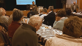 Buda Dénes, a DKV-s Dolgozók Lapja volt főszerkesztője tartott rendhagyó lapszemlét az újság 1989-1991 közötti számaiból az Olajipari Műszaki Nyugdíjasok Egyesületének idei utolsó klubnapján.