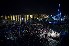 A délután 4-től 5-ig tartó családi hívogató keretében betlehemezést mutat be a cserkészcsapat, karácsonyi énekeket ad elő a Canticum Novum Vegyeskar, valamint tűzzsonglőrök és gólyalábas hívogatók gondoskodnak az ünnepi hangulatról. Délután ötkor kezdetét veszi az ünnepi gálaműsor, amelynek keretében Vezér Mihály polgármester mond köszöntőt és kapcsolja fel az ünnepi díszkivilágítást. A műsorban a Bodzabogyók Énekegyüttes, Násztor Eszter, Pálinkás Geréd Marcell és Vastag Tamás közreműködik. A rendezvényt lézershow zárja.