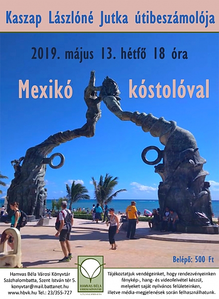 Kaszap Lászlóné (Jutka) útibeszámolója egy falatnyi Mexikóval Belépődíj. 500,- Ft