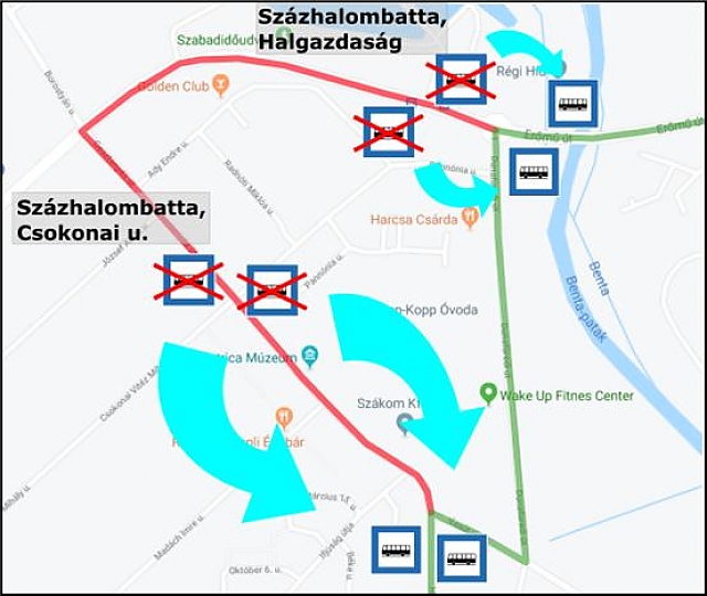 A munkavégzés ideje alatt a Volánbusz járatai – a 708-as, a 709-es, a 710-es, a 712-es és a 715-ös – terelt útvonalon közlekednek, és az alábbi megállóhelyek ideiglenesen áthelyezésre kerülnek: