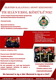 A Pest Megyei Katasztrófavédelmi Igazgatóság Érd Katasztrófavédelmi Kirendeltség felvételt hirdet.