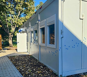 Szabó T. Anna soraival indult a Regionális Autista Központ új konténer épületének átadása 2025. október 3-án, a reggeli hűvös, ámbár csodás őszi napfényes udvaron. A rövid nevén is ismert RAK tanulói, kicsik és nagyon, megható, mintegy húszperces műsorral ünnepelték az új tantermeket tartalmazó, az általuk "Kontipalotának" nevezett konténer épület átadását.