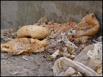 A szomszédok etetik, de csak a kerítésen keresztül tudják bedobálni az ételt. Nyáron a meleg hatására bűz, patkányok, döglegyek lepik el az épített környezetet. A környéken minden ház és kert ápolt tiszta, de tulajdonosaik évek óta szenvednek egy fiatal pár rendetlensége miatt. Nyáron az udvaron hatalmas gaz, télen a kutyakaja siralmas látványa fogadja a vendégségbe érkezőket Dunafüred egyik frekventált utcájában.